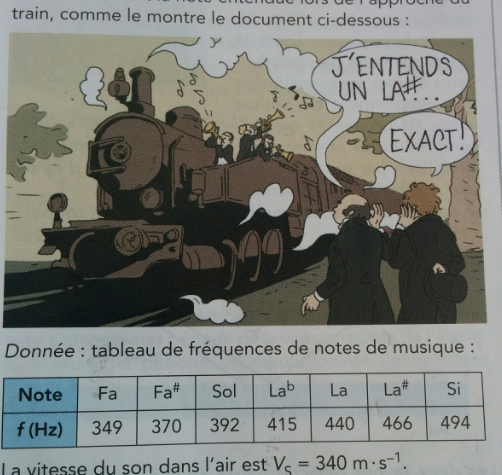 b. Quelle est la fréquence de la note f(R) entendue par les musiciens situés au bord de la voie ferrée ?