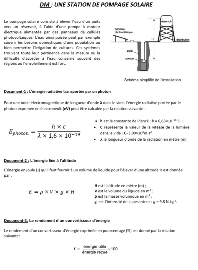 Re: Pompage solaire devoir maison terminale enseignement scientifique