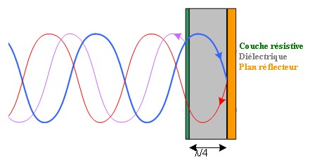 Les deux faisceaux réfléchis doivent entrer en opposition de phase de manière que la quantité totale d'énergie renvoyée par le matériau soit faible, voire nulle si les deux faisceaux réfléchis sont de même intensité.