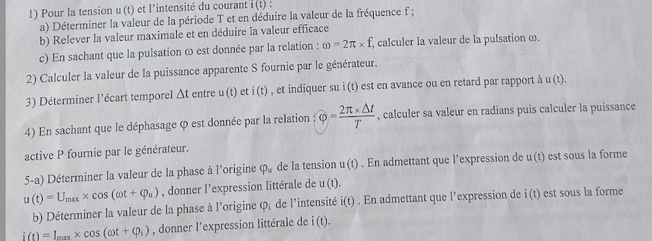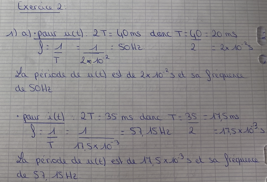 Sinon, soyez plus précis pour la valeur de la période de i(t). Question 1