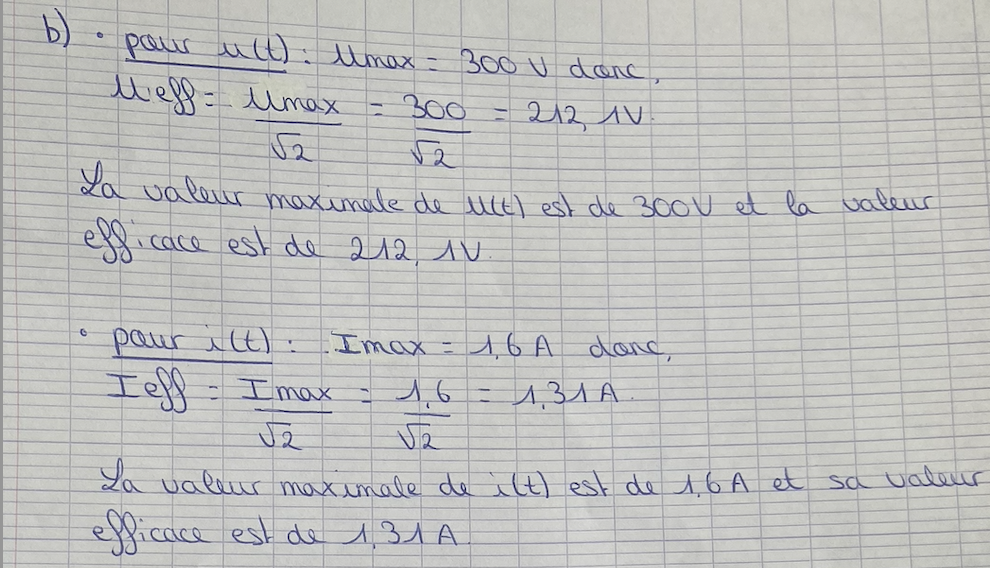 Pour la question 1 A pour i(t), je ne comprend pas ce que vous voulez me dire dans la precision.