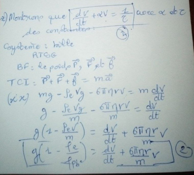 La valeur de alpha est bien 6pi n v/m il y a du avoir une inversion. Cela correspond bien à la forme de l équation différentielle demandée. Cependant en spécialité de term l équation différentielle sur la vitesse avec un frottement visqueux n est pas au programme.