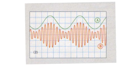 Ici, pour le signal modulant, d'amplitude Um, on a ajouté une tension de décalage, Uo; la tension modulante évolue de part et d'autre de Uo : sa valeur maximale vaut Um+U0, sa valeur minimale vaut Uo-Um.