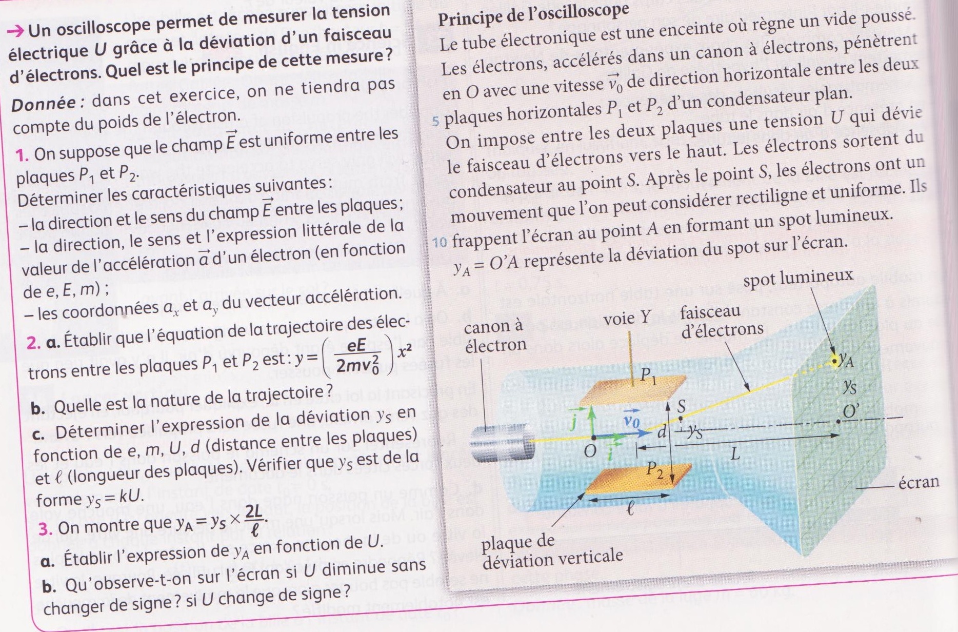 Mais je n'ai pas reussit a developper. Et pour la 2.b jai fait : puisque l'electron est charger negativement ,la trajectoire est parabolique est tourne dans le sens opposeay chamoe E.