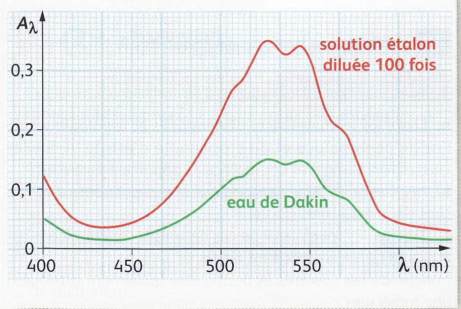 Si la solution de Dakin absorbe la lumière de la même façon que la solution étalon, c'est qu'elle contient les mêmes espèces chimiques.