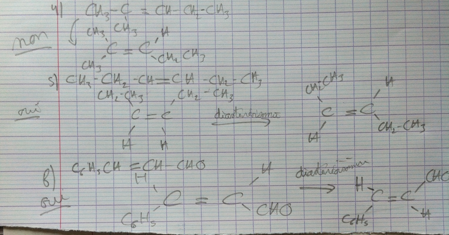 Je voudrais un peu d'aide pour un exercice sur ce thème. Je l'ai fait mais je ne suis pas vraiment convaincu ... Sachant que en classe on a vu des exemples dans lesquels on nous donnait déjà les différents isomères et on n'avait plus qu'à déterminer. Dans cet exo il faut que je vérifie si il y en a donc je n'ai pas de méthode claire, j'ai fait au cas par cas avec un peu de chance aussi peut-être ...