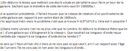 Ensuite pour le décalage de longueur d'onde, il faut utiliser l'effet Doppler. Vous devez avoir la relation dans l'énoncé à priori.