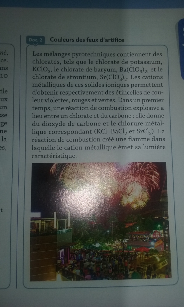 Pour écrire les équations chimiques évoquées dans le doc 2, il suffit de lire avec attention ce texte. N'oubliez pas lorsque vous aurez écrit les réactifs et les produits de les "équilibrer" (ou "de les ajuster" si vous préférez).