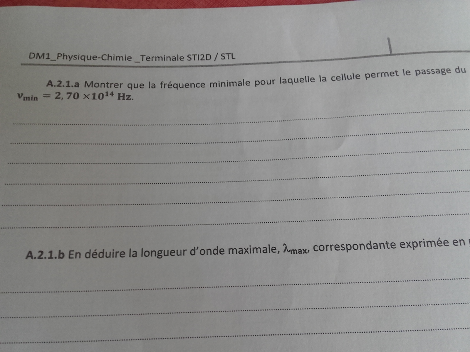 Vous devez préciser votre question. Nous ne sommes pas là pour faire votre devoir. Néanmoins, commencez par rechercher dans votre cours la relation entre énergie E ,fréquence , constante de Planck....etc. N'hésitez pas à nous recontacter.