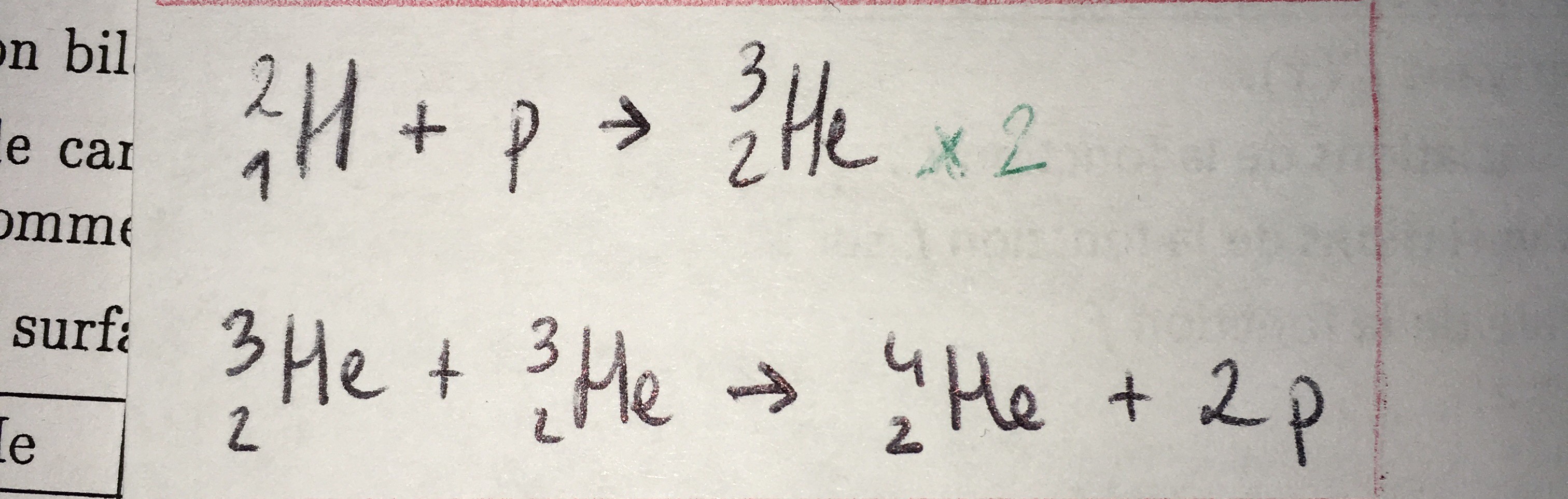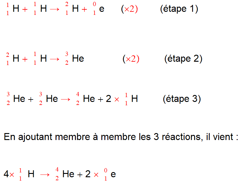 Première question : on vous demande d'écrire les trois étapes de la synthèse de l'hélium 4.