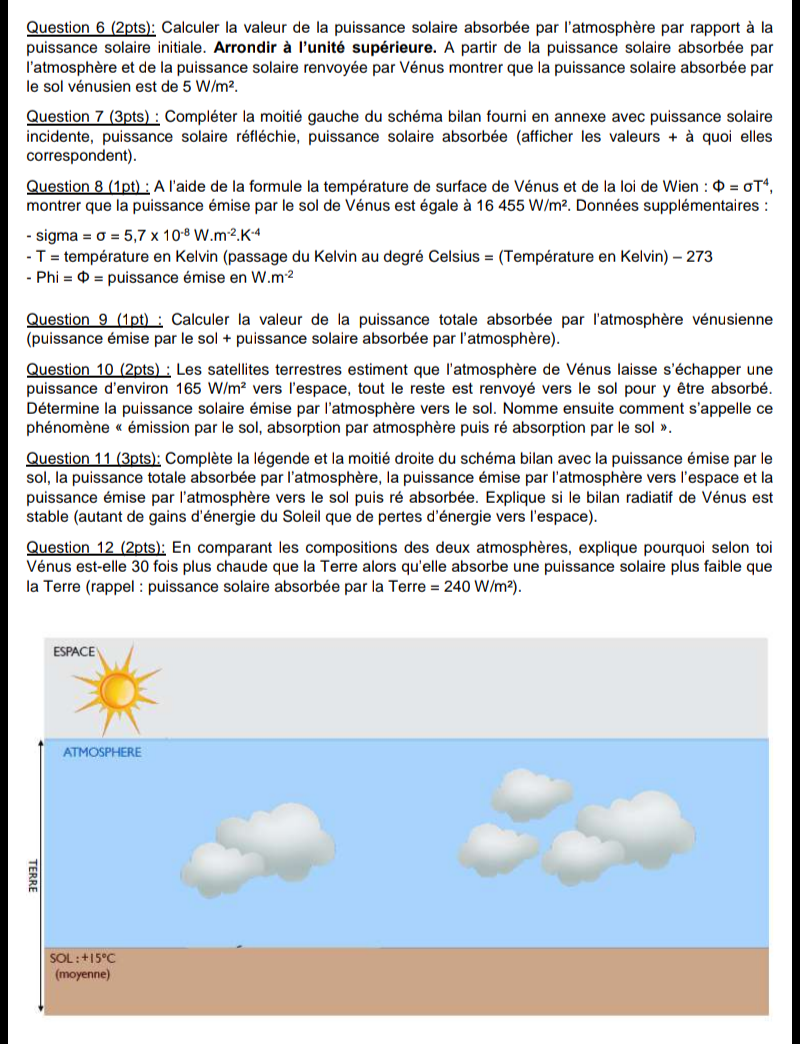 Pour répondre à la question 4, je vous conseille de vous inspirer de votre cours ou de votre manuel. Vous devez rechercher ce que l'on appelle "albédo".