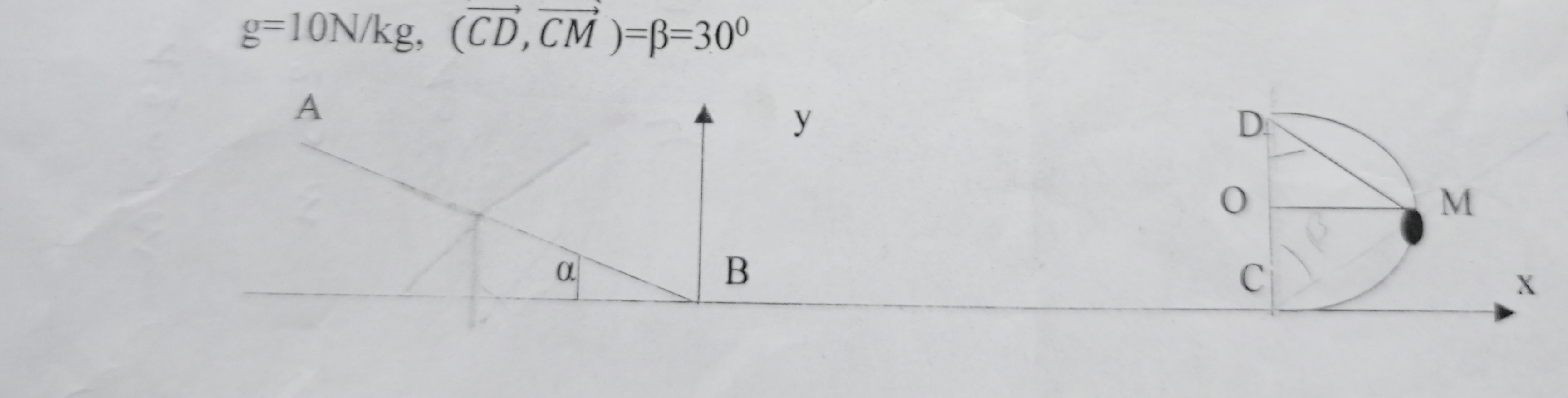 donné g=10N/kg, (CD,CM)=beta=30° alpha=30°
