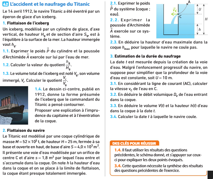 exo mécanique des fluides sur le naufrage du titanic