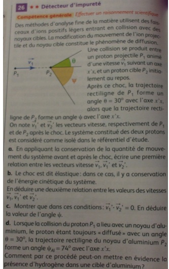 Je viens de voir l'exercice en question. Appliquez simplement la conservation de la quantité de mouvement au système en utilisant les données.
