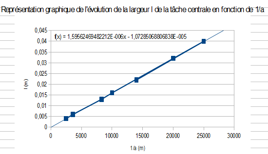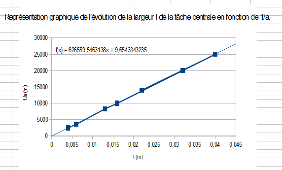 "...représenter graphiquement l'évolution de la largeur de la tâche centrale en fonction de 1/a"