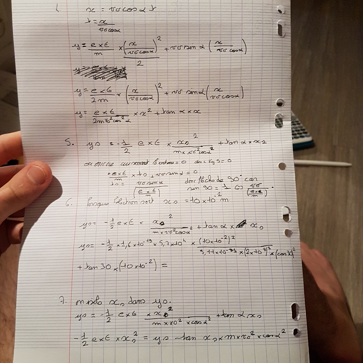 il y a une erreur de signe dans l'équation horaire de y (t) et par conséquent dans l'équation de la trajectoire.